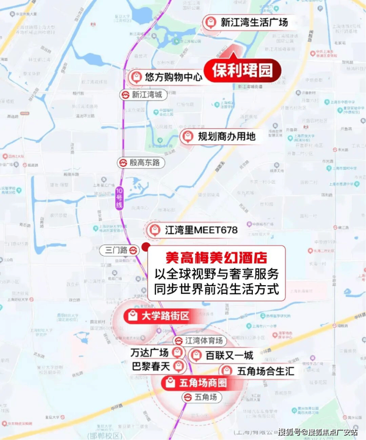 同时,10号线直接贯通虹桥火车站与虹桥国际机场等重要交通枢纽。此外,在建中的地铁20号线也已规划途经新江湾区域,未来通车后将进一步加密轨交网络,实现与更广域城市核心区的无缝衔接。
