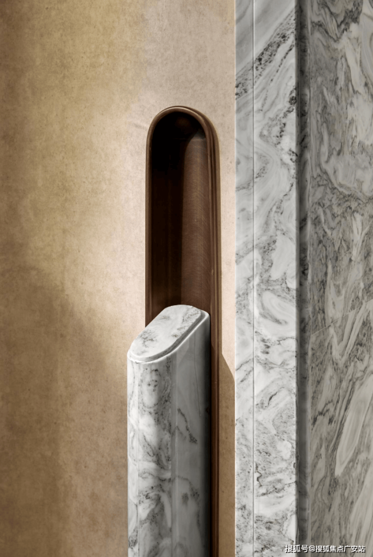 高定审美革新:在整个空间的美学表达上,保利·珺园甄选全球稀有的高端石材与材质,并融合了国际化的图形语言与弧形线条设计,于细微处打磨,致力于营造经得起时间考验的艺术化居住质感。