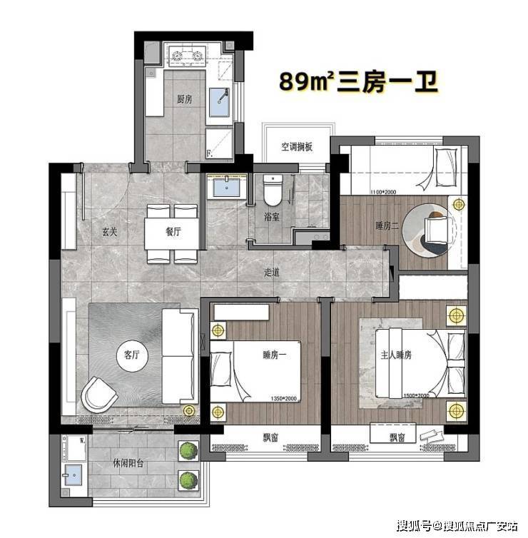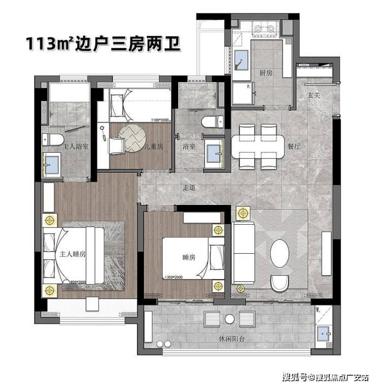 建面约120㎡三房两厅两卫