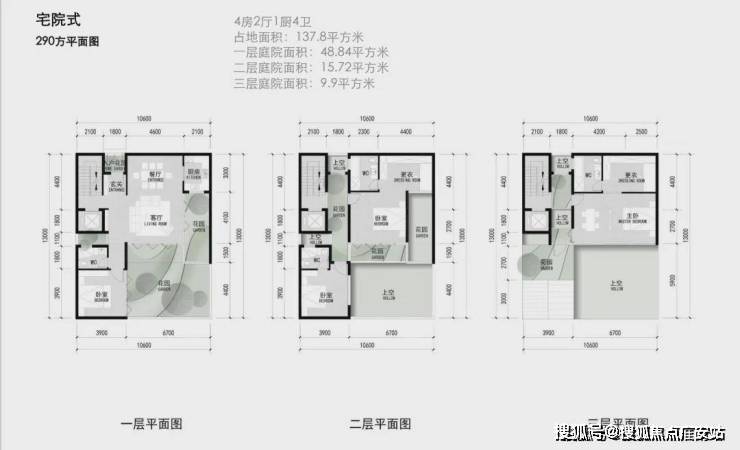 以300㎡户型为主,局部设置240㎡、400㎡等户型。