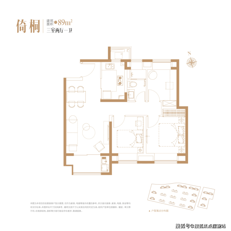 主力户型:建面约 78㎡二室二厅一卫、约 89㎡三室两厅一卫、约 100㎡三室两厅两卫。