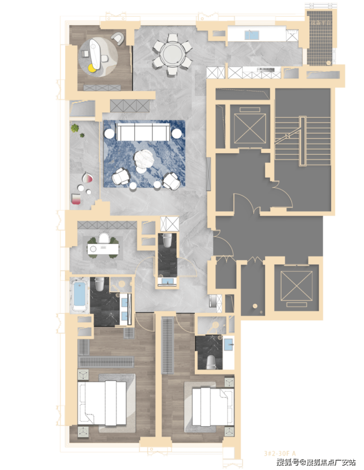 建面约217㎡三房三卫3000万+
