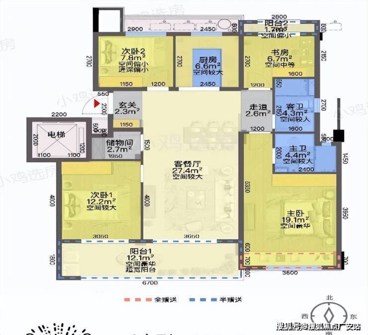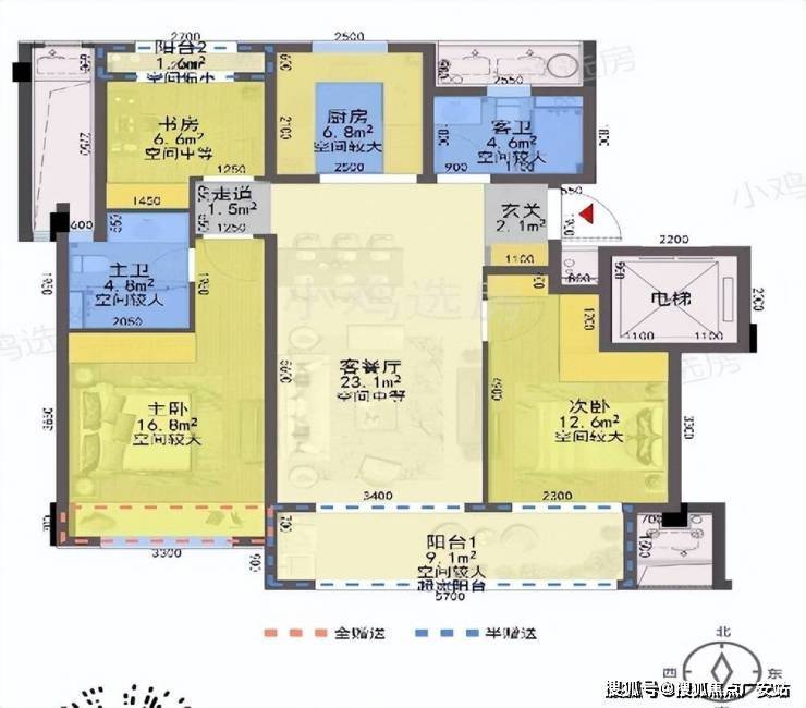 优势:客厅带阳台、卧室较大、全明卫、2个阳台、阳台宽6米、有玄关、三开间朝南、U型厨