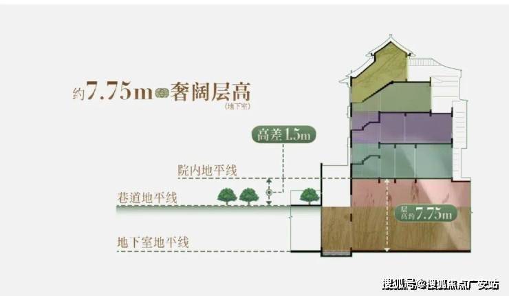 排屋地下室约7.75米,「首层化」地下室的创举性设计。