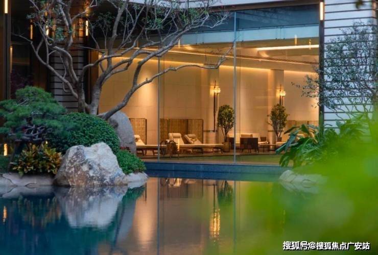 会所是豪宅的标配,云启玉渚共63套排屋和180套叠墅,却配置了约2700方的琉璃会馆,围绕中央的开阔山池和一道落差约6.4米高的飞瀑,布置了恒温泳池、双私宴厅、健身房、茶室,把中式大宅的仪式感与舒适度拉满,远超普通低密的营造标准。