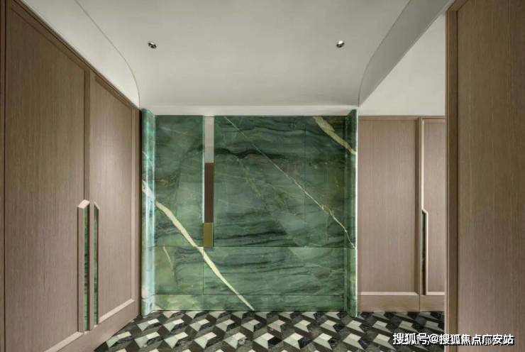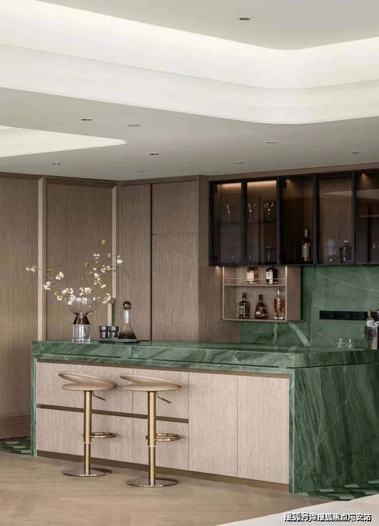 对于这些低密业主来说,直面未科中轴线的瑞玺,就是城西版的“杭州中心”。华润置地深谙这一点,瑞玺即将开放的370㎡户型样板房,位于那套单价7.9万元的房源楼下,与杭州中心5000万级的顶流豪宅一脉相承。延续了杭州中心最受欢迎的青玉风格,重新打造升级版,选用了奢石第一梯队的百达翡翠,单方造价达到9000元/㎡。搭配温润细腻的木饰面,将平静的高级感融入其中。