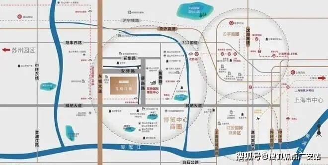 交通配套:扼守沪苏交通脉搏,距离苏州地铁11号线4号出站口展览中心站仅50余米,在花桥站与上海地铁11号线同站换乘,可轻松转乘到达苏州、上海各个区域。此外,项目周边还有三横三纵立体交通路网,临近昆山中环南线陆家出口以及城市快速路绿地大道,可通达城北、城东、城西等主要城市区域,距离京沪高速花桥出口也较近.