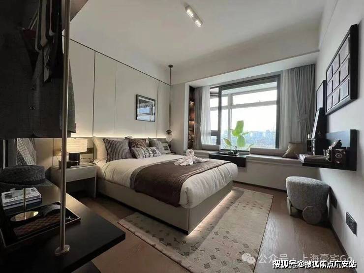 主卧套房设计,贯穿南北,自带卫生间和衣帽间,还有大面积飘窗,舒适度和私密性双爆表!