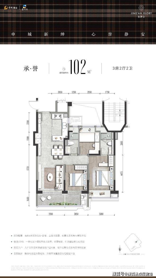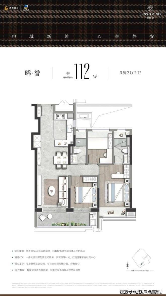 其中建面约112-119㎡高拓三房配备美诺四件套厨电、门面奢石定制等品质精工,