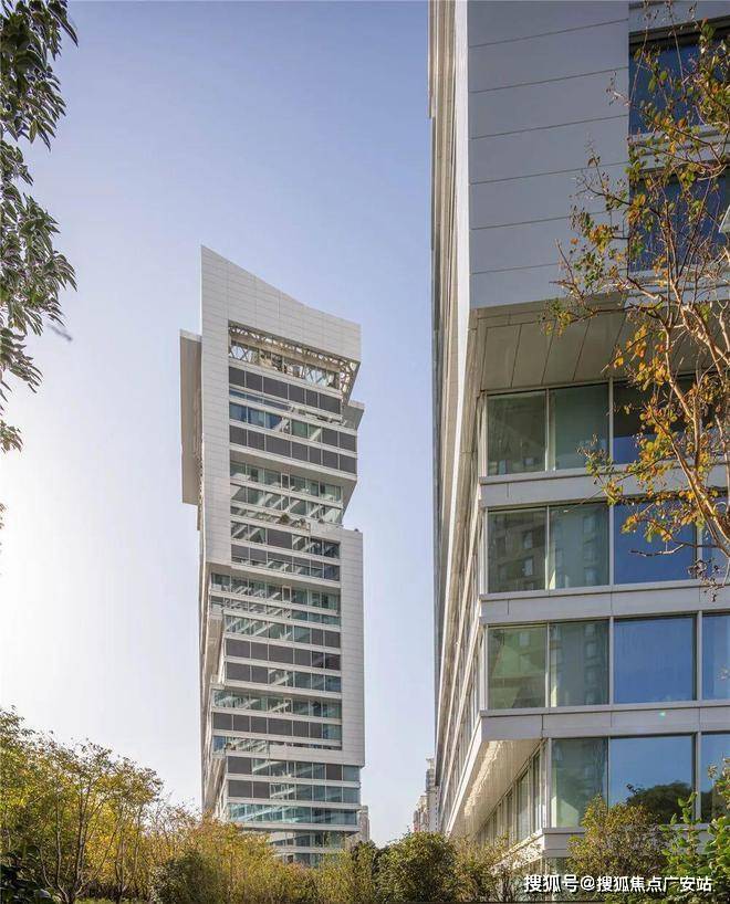 同时这片森林还使得建筑的主体立面在接近地面的部分完全掩映在绿色森林里。建筑就像从自然环境中生长出来的一样,充盈着大自然美妙的律动。加上建筑群疏密相间,高低错落,真正做到高楼与绿化互相借景,造就绝美建筑意象。即使蹲下去看所有细节,也会啧啧称奇。