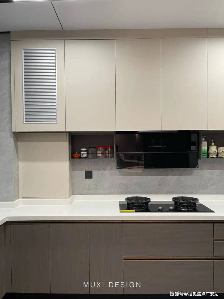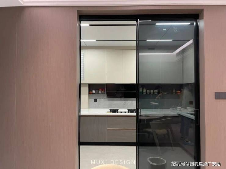 因为家中有老人和小孩,对油烟味比较敏感,所以没有做开放式厨房,用联动推拉门隔开餐厅,隔味效果好。