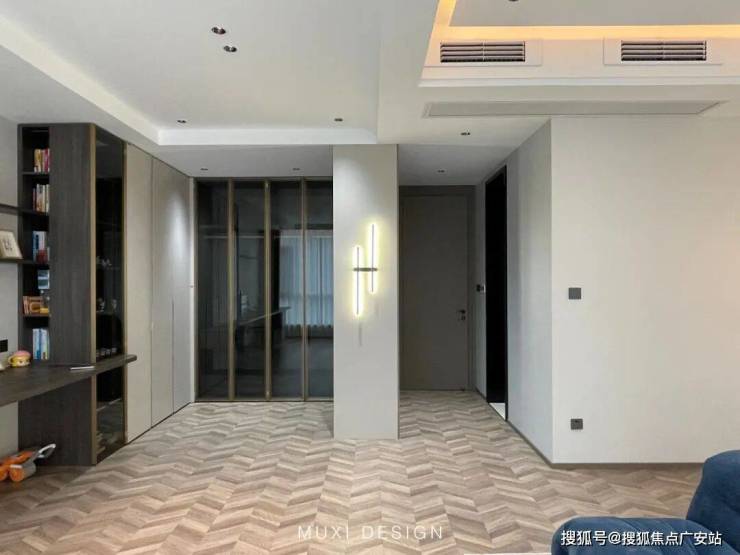 主卧空间大的像一个客厅一样,让人心生羡慕,原始空间是两个相邻的房间,打通之后空间就大了起来。卧室也不单单只有睡觉的功能,还兼具电竞区,衣帽区和休闲区。