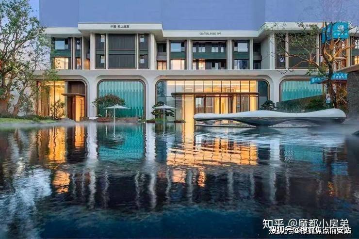 豪宅铝板、玻璃都很常见,但中建玖上琅宸用上了陶板,并且创意和审美独一档.天青釉面工艺,结合落地玻璃和金属线条,还是有趣的非对称设计,从不同角度看都独具风格,现场比效果图更有质感,未来在市场上也更有竞争力.
