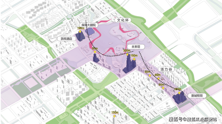 当下有 远香湖、保利大剧院、嘉定图书馆 老三大件配套以及地标级超高层建筑凯悦酒店;未来将建设 文化环、未来塔、活力谷 等城市“新三件套”。
