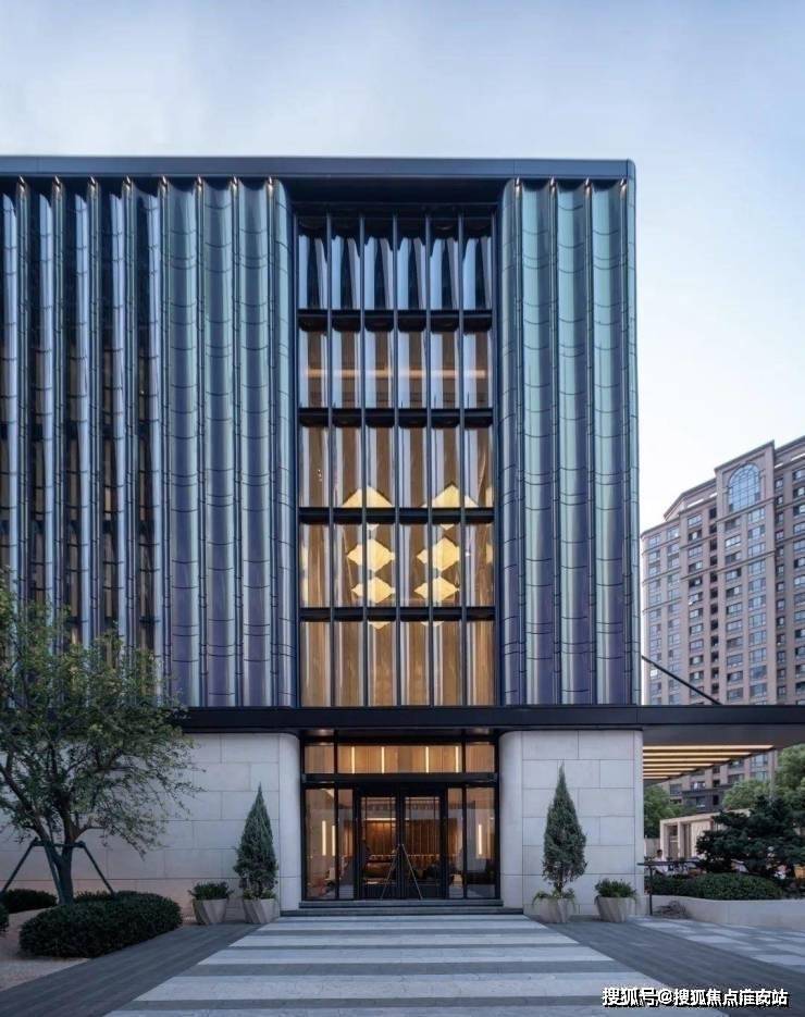 来到项目会所,就被其流光幻彩铝板的外立面所吸引。不同角度有不同颜色呈现,造价昂贵。大堂的玻璃也很吸睛,用的半钢化夹胶反弯弧玻璃,半径仅为约600mm,施工难度大、成本高!