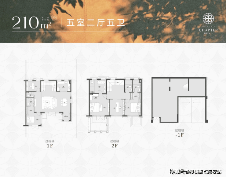 210㎡ 别墅:4000 万起,地上 3 层 + 5.7 米挑高地下室 + 南北双花园