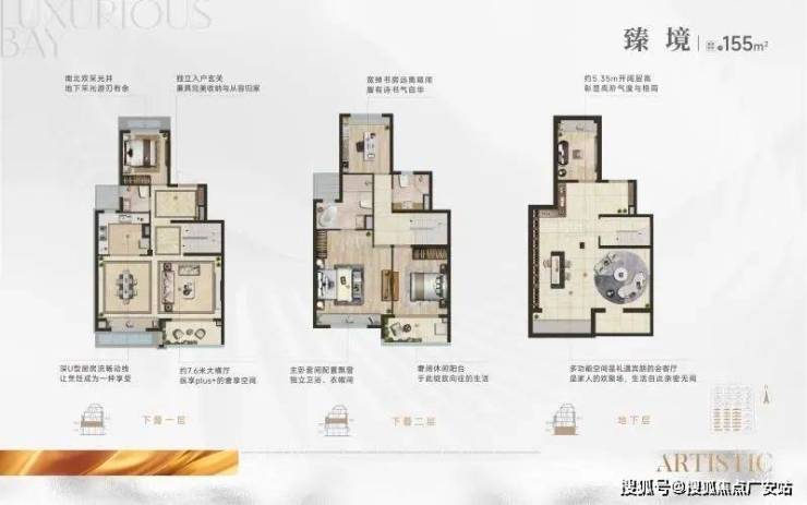 叠墅层高:叠墅1层层高约3.4米,2层层高约3.2米,地下室层高约5.35米