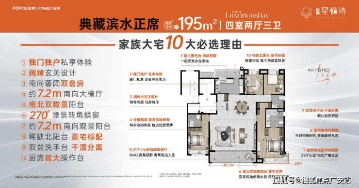 以7.6m大横厅,深U型厨房以及奢阔休闲阳台,彰显高阶气度与格局,独立入户的设计互不打扰,静享私密,南向大横厅,让阳光、风景与生活常伴。再次以奢阔美学艺术生活,敬献金山大人物。