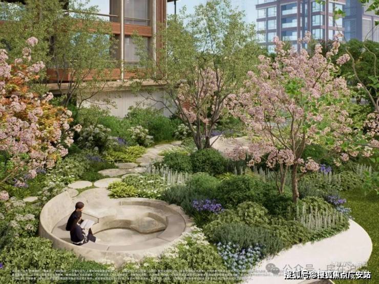 社区景观上,突破市区项目常见的「兵列树阵式」布局,通过建筑楼体的精密偏转,形成罕见的围合式社区形态。