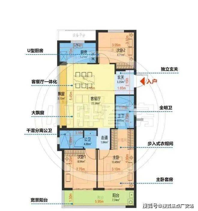 112㎡户型:灵活空间满足家庭成长需求,独立玄关收纳,主卧套房配置衣帽间及飘窗