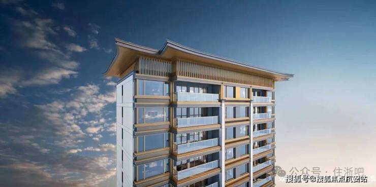 建筑立面由四面大面铝板、首层局部石材、大面积玻璃组成,高层屋顶还有建发标志性的飞檐设计造型,不仅耐看还高级。