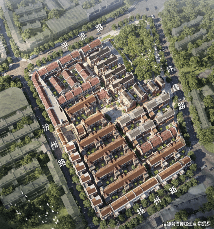 翠湖滨江溯源“花园里弄”的建筑形态,尊重街巷里弄的空间秩序,打造一中心、四节点的“四海一心”的里弄布局。