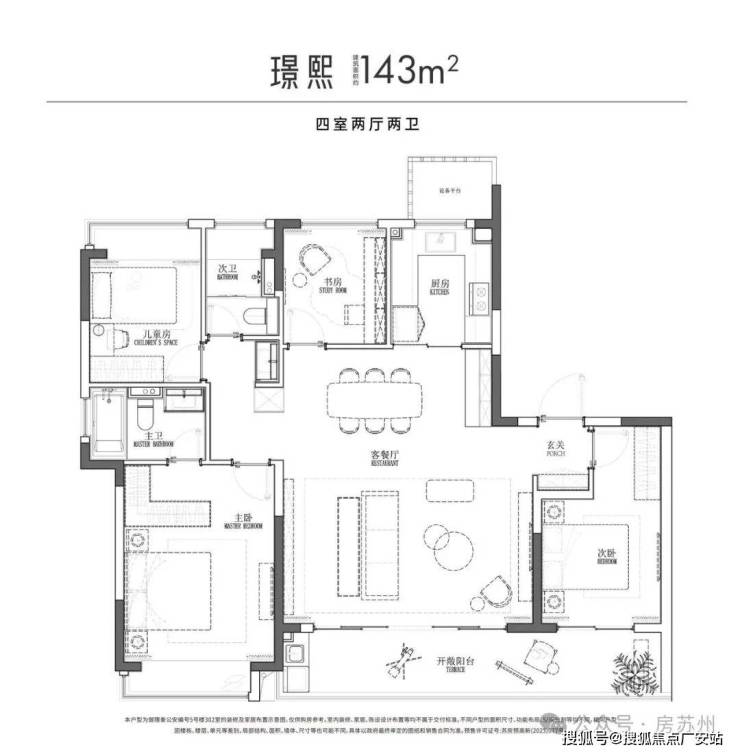 户型面积:建筑面积约134㎡三房、134㎡四房、140㎡四房、143㎡四房、