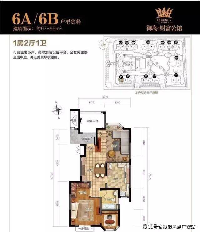 面积:97㎡-99㎡,户型:1房2厅1卫▼
