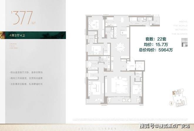 而建面约299-377-400㎡同样有出色占位,中低区无遮挡,视野采光俱佳。