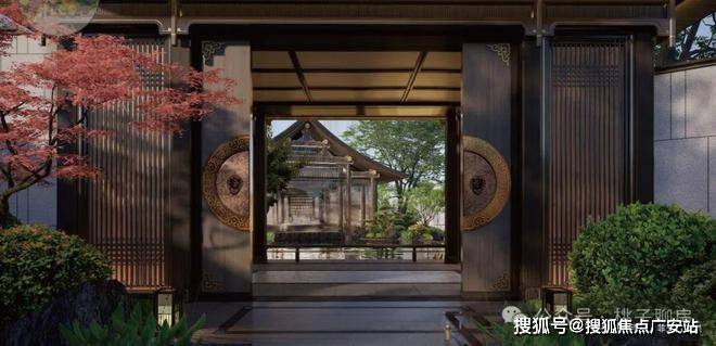 外立面与景观:四大面铝板+约61米宽中式双重檐大门+独特三进五境九景园林景观