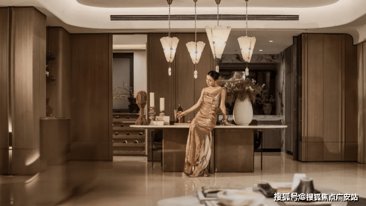 独立入户的十字女王玄关,对标源自纽约上东区豪宅的配置格局,尽显尊崇气度与私密性;一幅由东方鱼肚白天然石材加氧化铜加水柳木精心打造的景致,通过玄关作为关键点与客厅融合,营造出一种优雅的端景氛围。