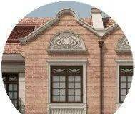 清水墙砖:每块经900℃窑火淬炼的定制红砖,以上海传统「梅花丁」工法逐砖铺陈,以工艺最复杂的「元宝缝」错缝排列,形成横平竖直、砖缝如线的视觉韵律。
