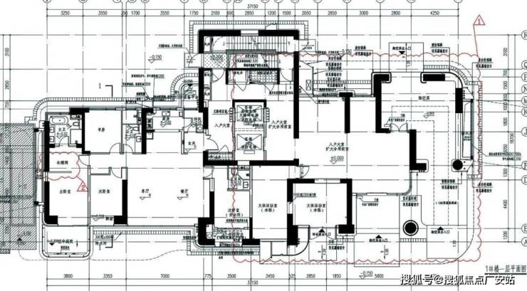 本次公示的是1#的平面图,一梯两户设计,只有种4房3卫设计。