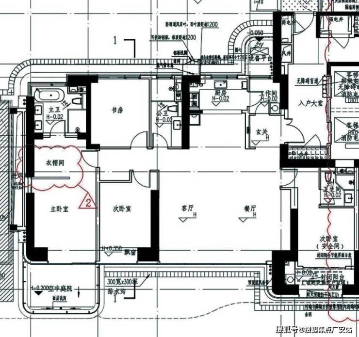 4房2厅3卫设计,南向约7米大横厅,主卧开间3.8米,南向双卧室套房设计,主卧室带衣帽间和四段式卫浴间,南次卧则是带暗卫和封闭阳台。北向厨房带工作间,且为双入户设计,两条归家动线!值得关注的是,南向超大空中庭院,这也是个第四代住宅!