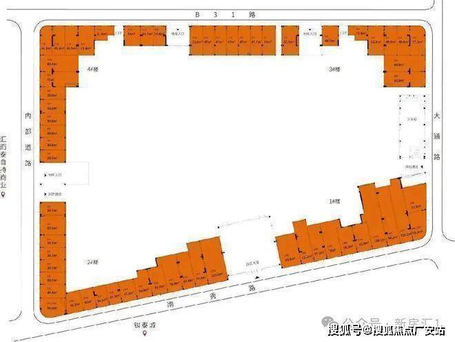 建筑形态:4栋13-15层围合式建筑,仅106套大平层+商业+酒店+写字楼