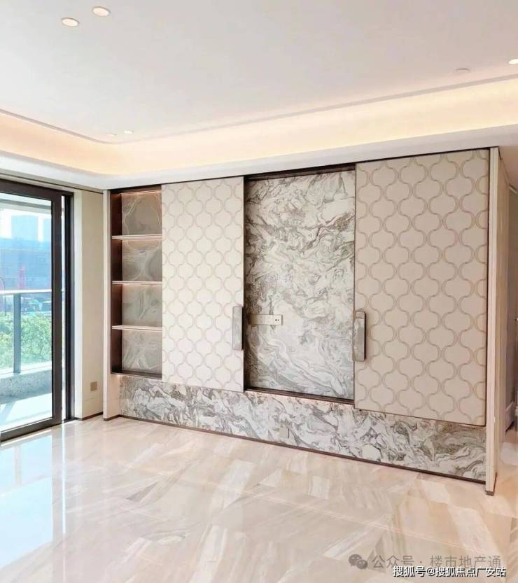 6)其他:华为智能家居系统、铸铝子母门(贝母马赛克拼花+酒店式入户门牌和射灯);赠送玄关柜+过道柜+餐边柜(安第斯雪景石材+夹丝玻璃)
