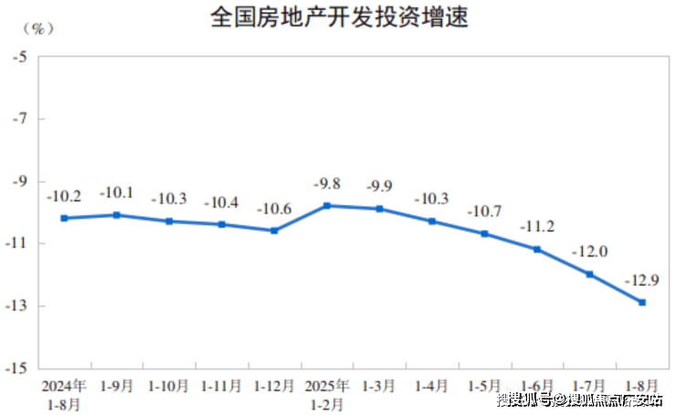 具体来看,房地产开发投资增速方面,累计同比跌幅继续扩大。数据显示,1-8月份全国房地产开发投资60309亿元,同比下降12.9%;其中,住宅投资46382亿元,下降11.9%。