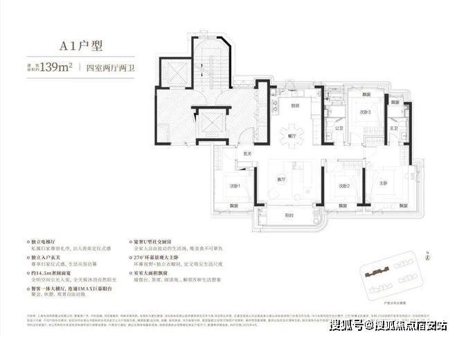 建面约139㎡四房户型,更是形成"阳光平权"的居住体验。