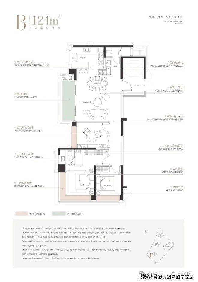对于建面约124㎡户型,我的第一感觉是“十年难遇”。当外滩板块的新房面积,基本站上200㎡+,总价普遍顶破4000万关口,外滩瑞府以建面约124㎡(板块五年内难得的小户型),为入住外滩撕开一道珍贵缺口: