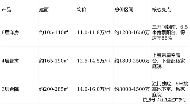 叠拼:建面约 165–190㎡,总价 2000万起