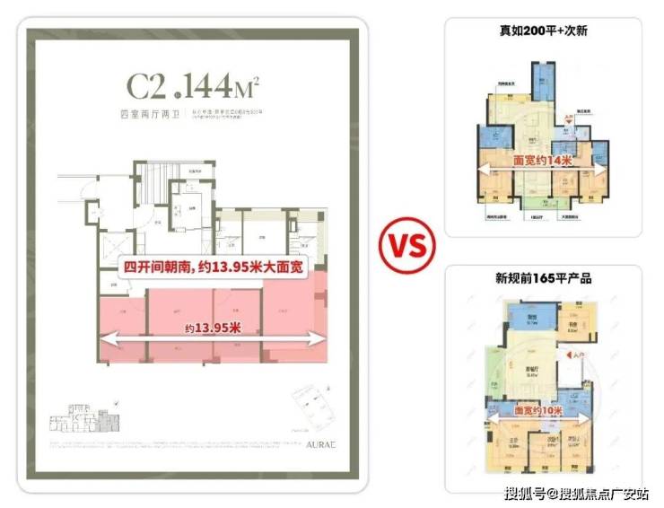 同面积段新规产品普遍仅三开间朝南、面宽约11米,本项目直接做到四开间朝南,面宽高达约13.4米。面宽属于后期无法改变的硬指标,带来的是更持久、更舒适的采光与视野升级。