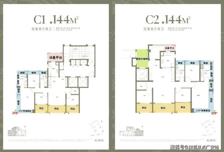 2、约144㎡4房,市区景观更好、实得率更高的改善户型