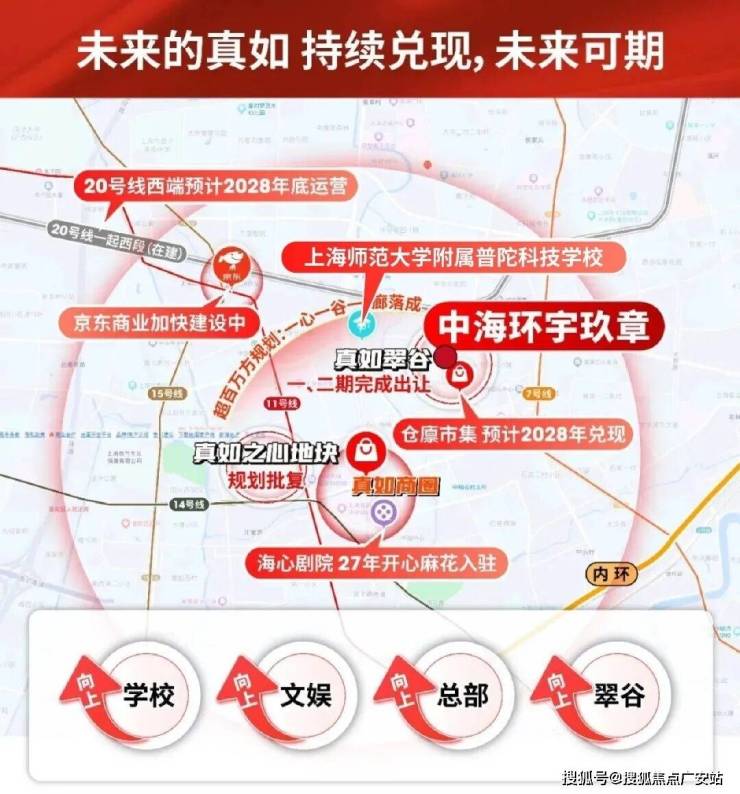 真如“一心一谷一廊”加速成型,翠谷出让完成正在开发,真如之心即将出让,上海西站京东商业同步推进、20号线西端有望最快2028年底运营...内环旁土地普遍开发殆尽,真如爆发力堪称稀缺。