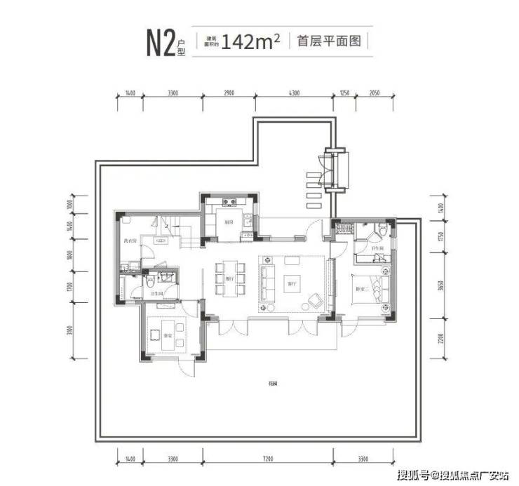 约142㎡户型为例,可设计为4房4卫,一楼奢适的餐客一体大方厅,可作为一家人的度假生活中心,二楼还拥有两个套房,带孩子和父母周末小住、更带有约110㎡花园,足够你种上一圈花草修竹,摆一个茶几两把躺椅,夏天果树成荫,冬天红梅傲立,生活的烟火气立马就出来了。