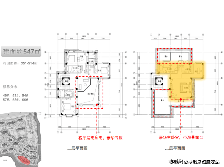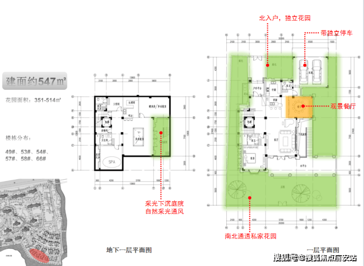 建面约547㎡独栋别墅,花园面积351-514㎡