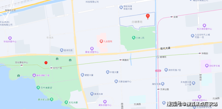 以现代大道为轴线的园区湖东,集聚了金鸡湖景区、时代广场、诚品书店、中环广场(在建)、科文中心、ICC、国金中心、白塘公园、现代传媒广场、东沙湖公园、奥体中心、九龙医院、儿童医院等资源配套,以其无可争议的先进规划和得天独厚的自然环境,成为苏州乃至长三角宜居区域。
