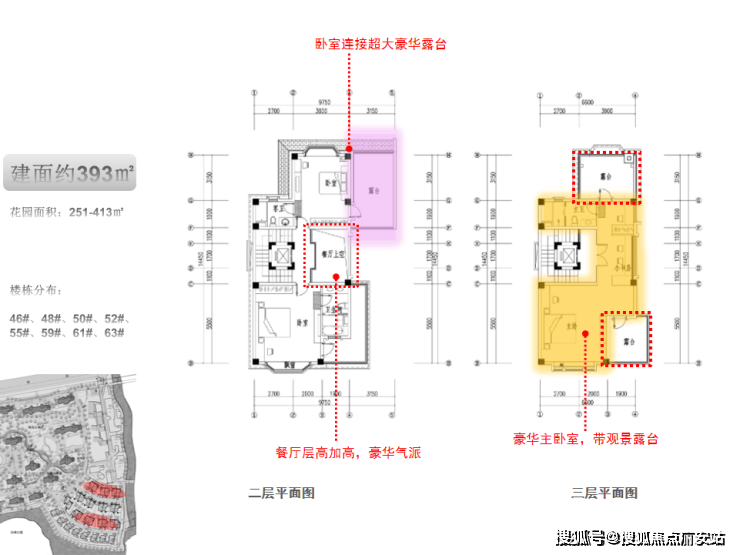 建面约393㎡双拼别墅,花园面积251-413㎡