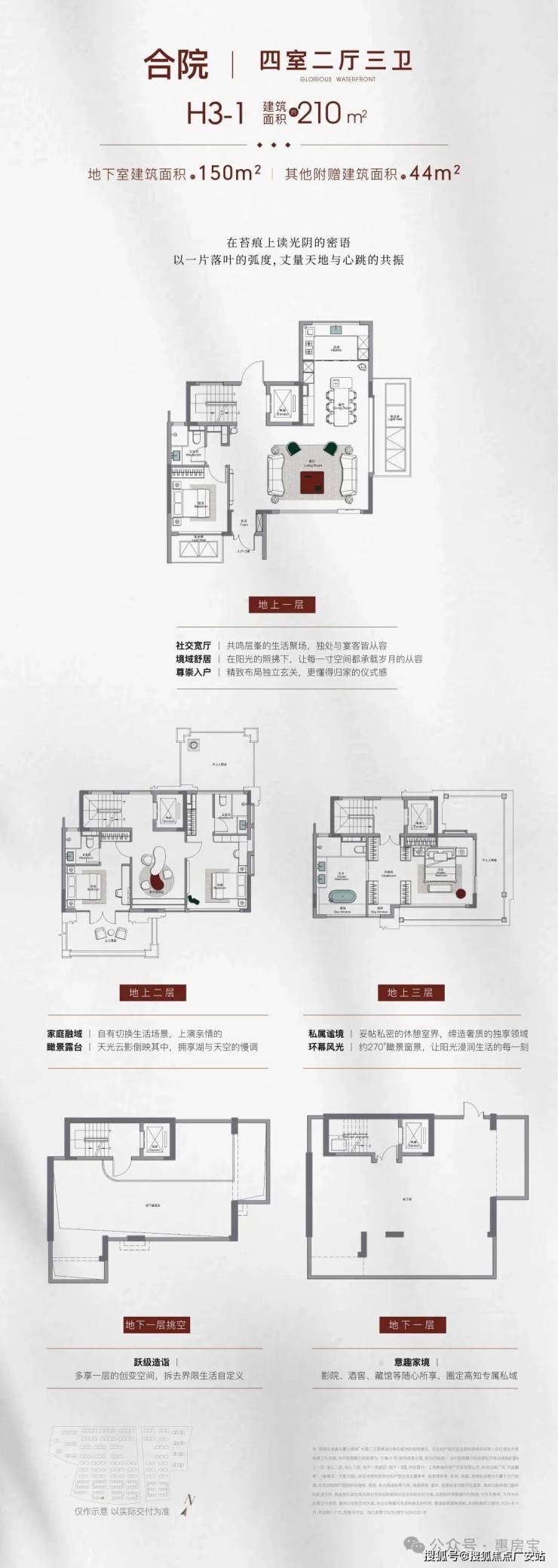 社区打造约640㎡下沉式庭院、约2500㎡双地下会所(含恒温泳池、健身房、瑜伽室等)