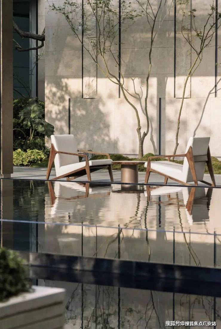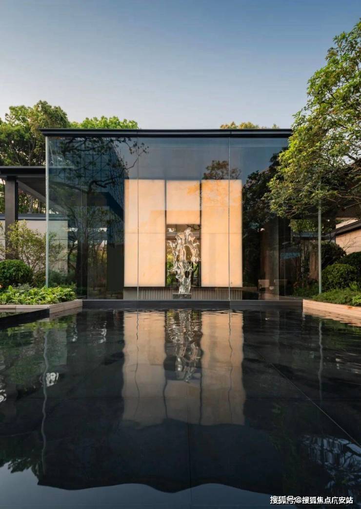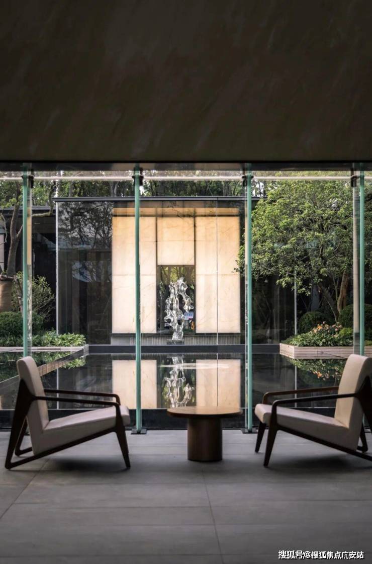 漫步于这样精致、这样不计成本用材、处处皆景的美学庭院中,我们看到一幅“浮光潭影”般的场景,整个社区中 大量采用的透光玉石、珍贵奢石、金属廊架、以及苹果店同款工艺的超大落地玻璃窗, 在绿植和水景映衬共同构成一幅美学生活画卷。