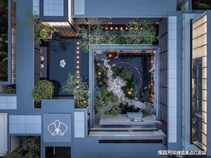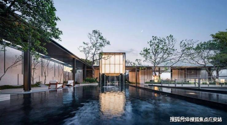 金茂府3.0标志性的下沉式庭院景观打造一个缩小版的苏州园林,采用 以小见大的设计手法打造院中天地 。其中的迎客松是从山东莱芜山区用直升机空运出来,再全冠移植运送到苏州,只为呈现山水真趣,处处皆景,不管白天还是晚上都非常惊艳。
